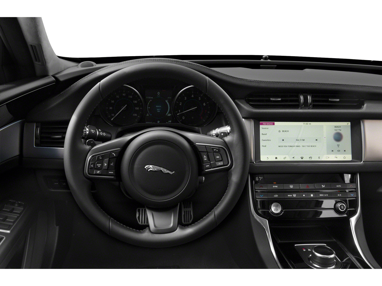 - Radio: Meridian 380W Sound System -inc: 10" capacitive touchscreen, Apple CarPlay, Android Auto, dynamic volume control, Bluetooth® connectivity and audio streaming, iPod integration, USB in center console, InControl Remote (including remote climate control, lock and unlock, beep and flash) and InControl Protect (including SOS emergency call, Jaguar optimized assistance call and stolen vehicle locator, navigation pro and Pro Services and Wi-Fi Hotspot