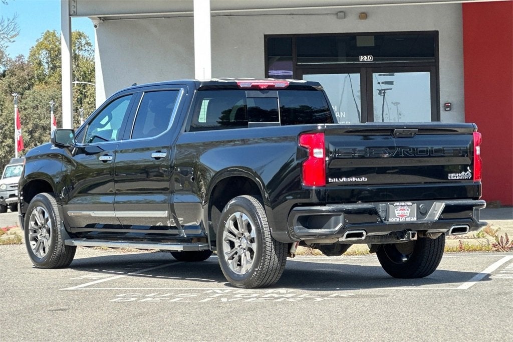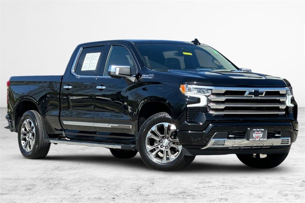 CARFAX One-Owner. Clean CARFAX. 2022 Chevrolet Silverado 1500 High CountryAll Pre-Owned inventory equipped with Clear Shield Package for $499 and all inventory (new and used) is equipped with vehicle tracking and recovery device $799.10-Speed Automatic, 4WD, Jet Black Leather.As your premier Sonoma County Nissan dealer, we here at North Bay Nissan provide for every automotive need for any customer. Please feel free to explore our website to see our extensive inventory of new and used cars and SUVs. In addition to our friendly and knowledgeable sales staff, we also provide financing, service, and parts for all our customers. While every reasonable effort is made to ensure the accuracy of this information, we are not responsible for any errors or omissions contained on these pages. Please verify any information in question with Dealership personnel. Prices do not include additional fees and costs of closing, including government fees and taxes, any finance charges, any dealer documentation fees, any emissions testing fees or other fees. All prices, specifications and availability subject to change without notice. Contact dealer for most current information. Price may include Manufacturer Rebates and Incentives, please see dealer for details We proudly serve Santa Rosa, Rohnert Park, Sonoma, Novato, Sebastopol, Cotati, Windsor, Healdsburg, Napa, San Rafael, Penngrove, Kenwood, Glen Ellen, Boyes Hot Springs, El Verano, Agua Caliente, Calistoga, St. Helena, Yountville, American Canyon, Oakville, Angwin, Deer Park, Eldridge, Fulton, Larkfield-Wikiup, Roseland, Forestville, Monte Rio, Occidental, Inverness, Point Reyes Station, Olema, Tomales, Marshall, Dillon Beach, Valley Ford, Bodega Bay, Bodega, Camp Meeker, Jenner, Cazadero, Guerneville, Monte Sereno, Bloomfield, Nicasio, Woodacre, San Geronimo, Lagunitas-Forest Knolls.