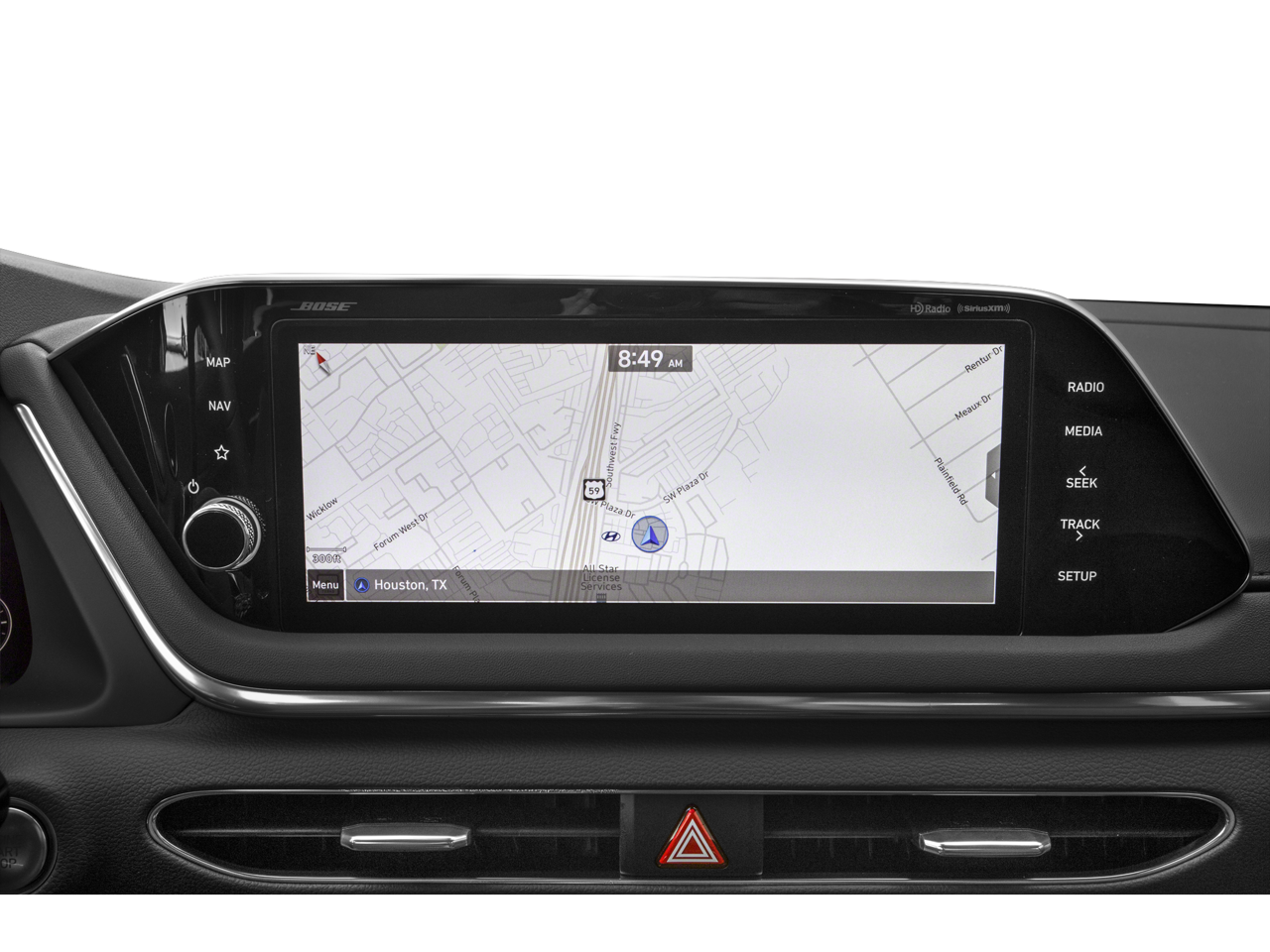 - Radio: AM/FM/MP3/HD/SiriusXM Display Audio w/Nav -inc: 10.25" color touchscreen, Bose premium audio w/12 speakers (1 center channel, 2 dash, 2 front tweeters, 4 door mounted, 2 rear mounted speakers plus 1 rear mounted subwoofer), dynamic voice recognition, integrated Bluetooth®, Blue Link connected car system, Apple CarPlay, Android Auto, USB, diversity antenna for navigation and HERE HD traffic
